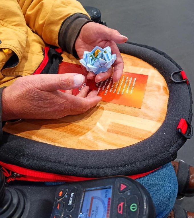 Mit weiteren interessierten Besuchern, von klein bis groß, mit Rollator laufend oder auch im Rollstuhl sitzend, konnten wir wunderbare Gespräche führen. Unsere selbstgebastelten Lotus-Blüten haben allen ein Lächeln in die Gesichter gezaubert. Behutsam haben wir diese den Besuchern in die Hände gelegt. Es war so berührend !